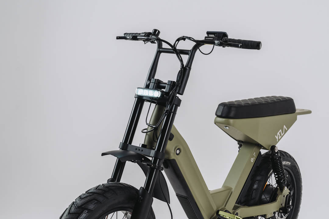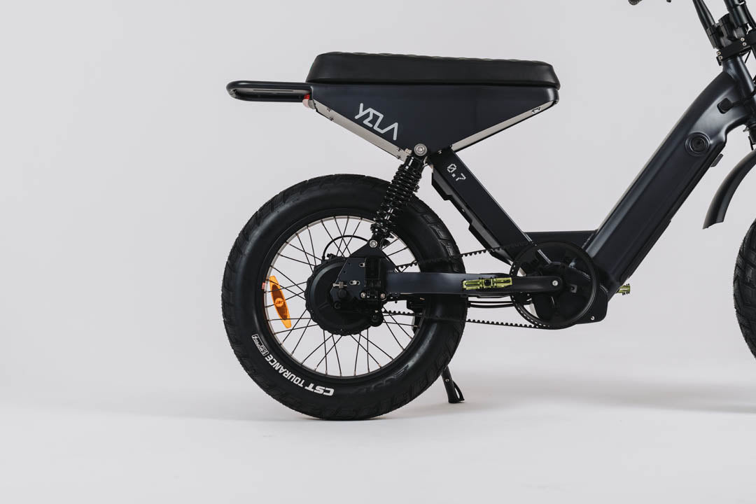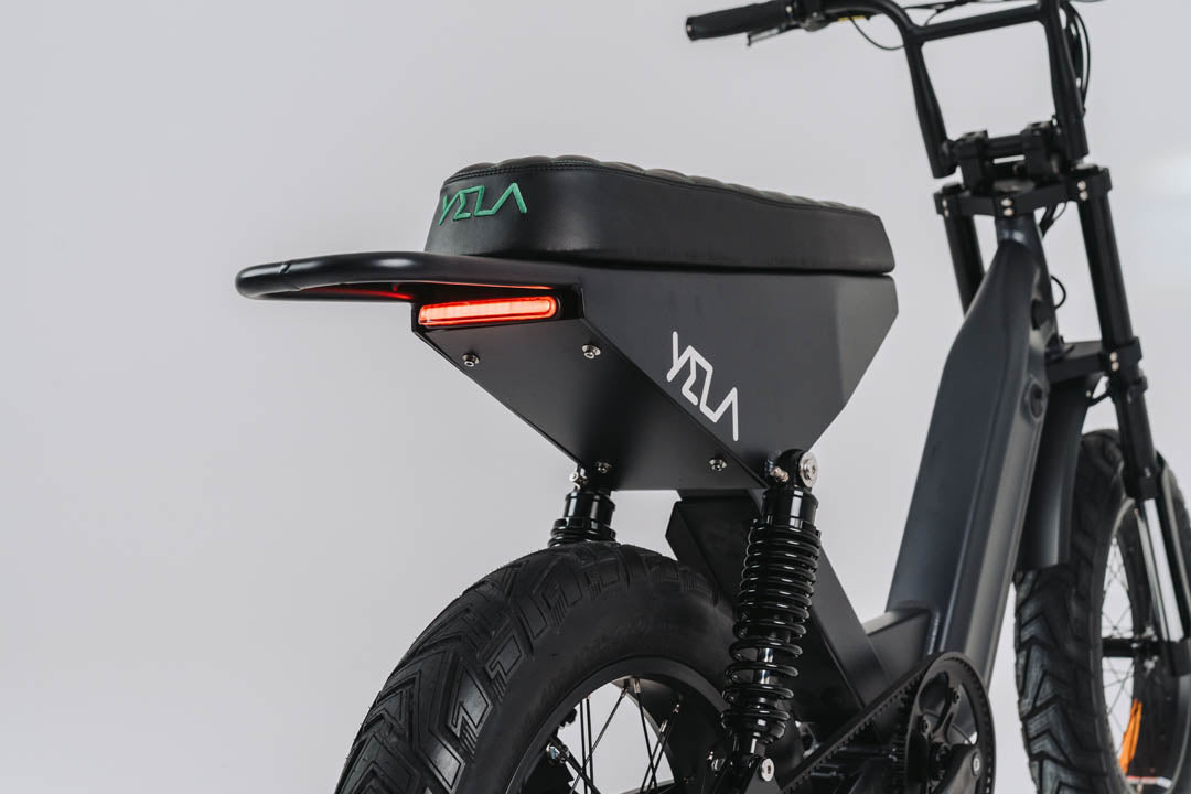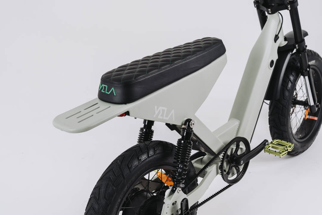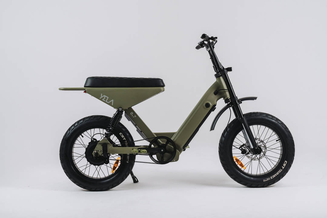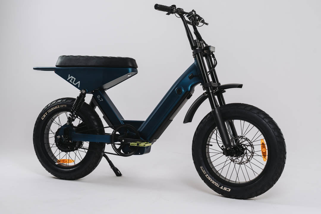 This 0.7 is the top of the line of the YELA models with over 1700W of peak power. 1000 W continuous high-end Truck Run downhill comp motor and torque sensing belt driven power pulling with an astonishing 120 N.m. of torque. These bikes have upgraded suspension and all the high-end components you could imagine with custom ally crank sets and pedals and custom gel seats that really set them apart from the rest. The bikes come with hidden lock box storage under the seat.