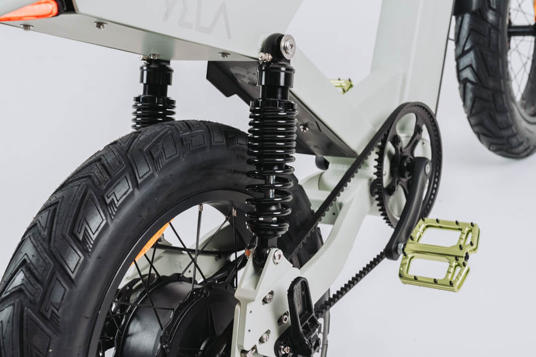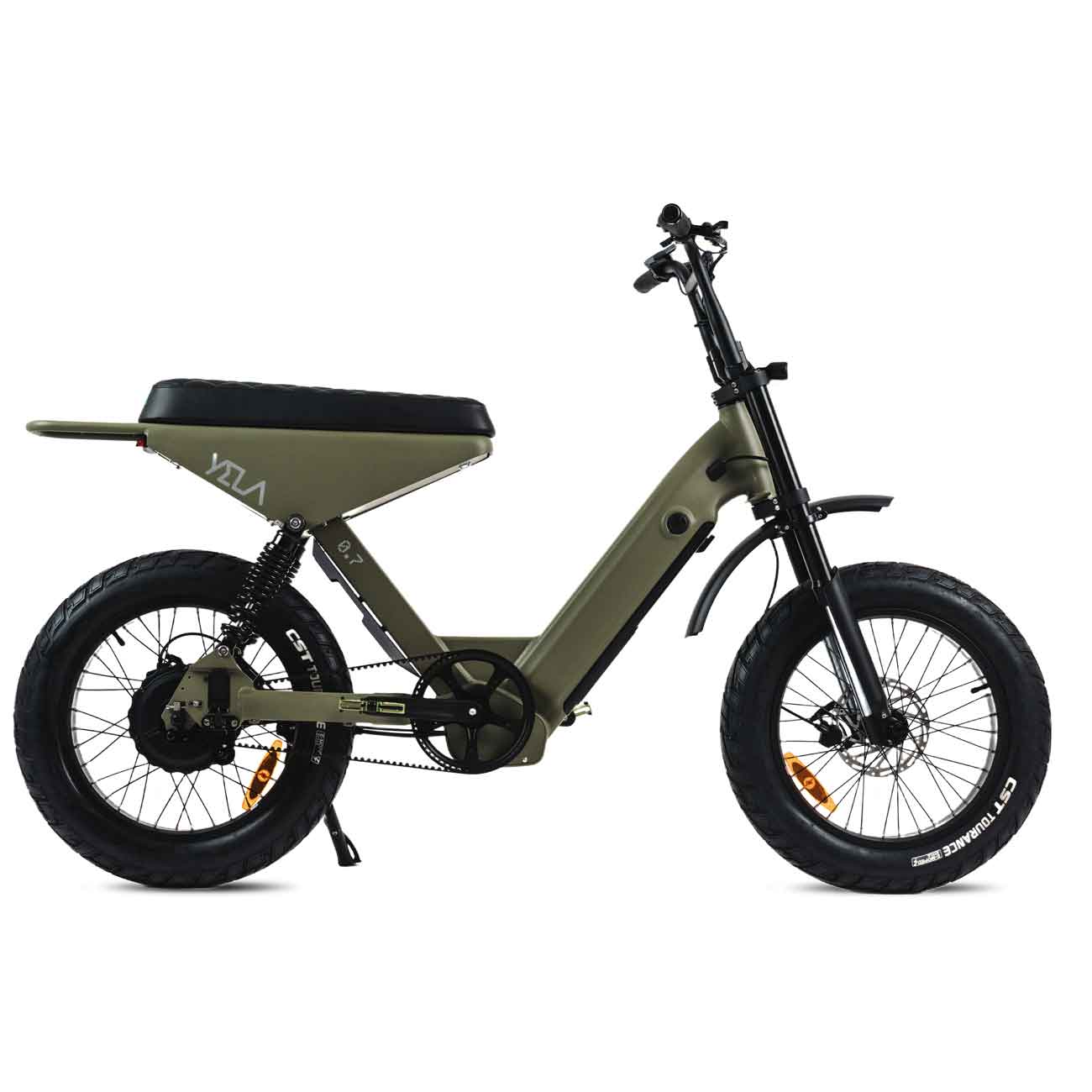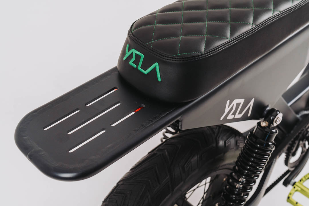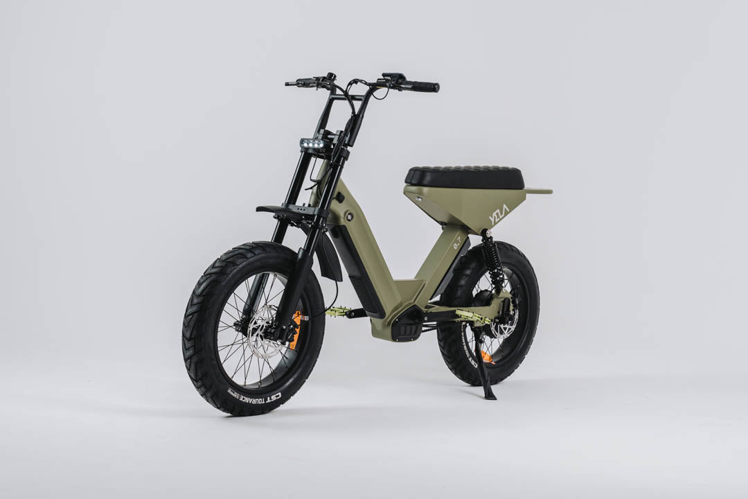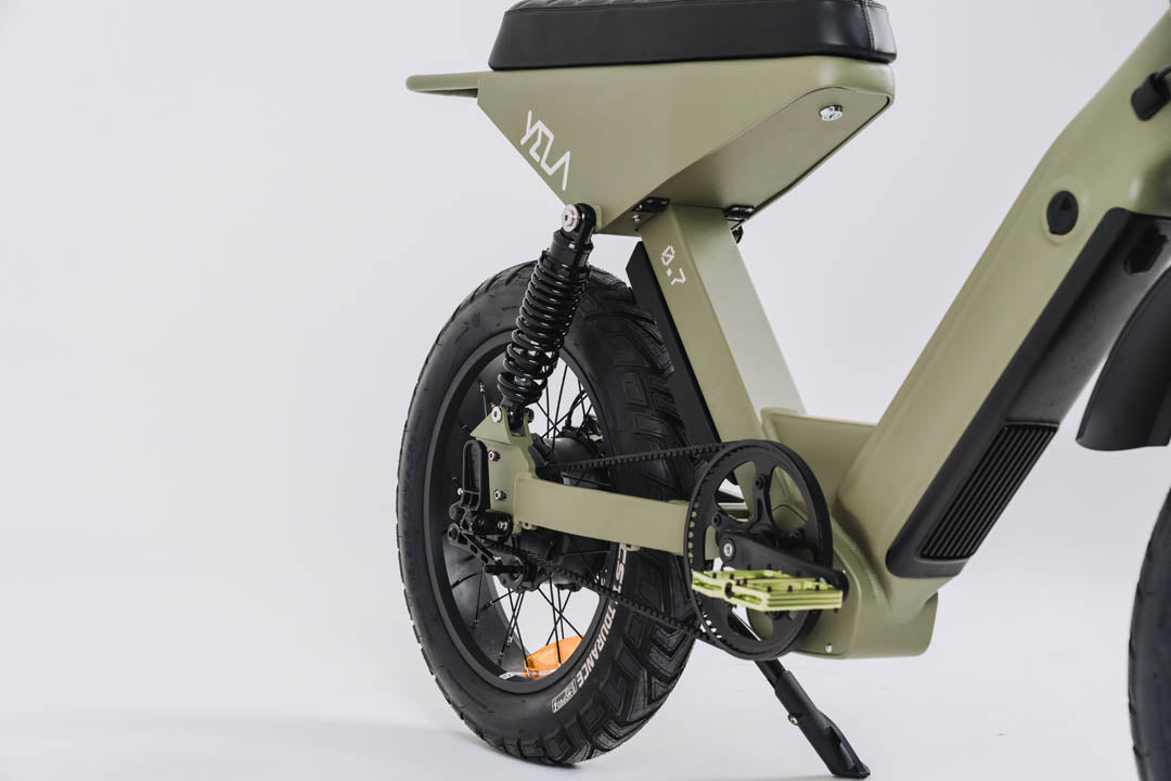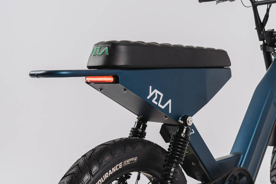 This 0.7 is the top of the line of the YELA models with over 1700W of peak power. 1000 W continuous high-end Truck Run downhill comp motor and torque sensing belt driven power pulling with an astonishing 120 N.m. of torque. These bikes have upgraded suspension and all the high-end components you could imagine with custom ally crank sets and pedals and custom gel seats that really set them apart from the rest. The bikes come with hidden lock box storage under the seat.